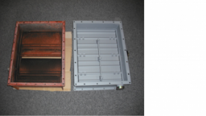 この年代では、日本の建築設備の開発・発展途上の真最中で、空調・防災ダンパーにも大きなガイドラインこそありましたが、現行法のように細かな規制は未だ存在せず、各ダンパーメーカーにより、施工性や合理性、品質を追求した様々な形状の空調・防災ダンパーが製造されており、技術競争・開発の歴史の跡がいたる箇所に伺えます。